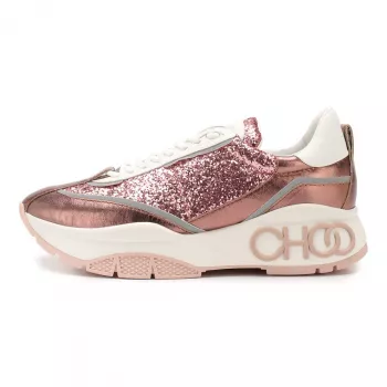 Jimmy Choo Pink Candyfloss Raine Leather Glitter Sneakers